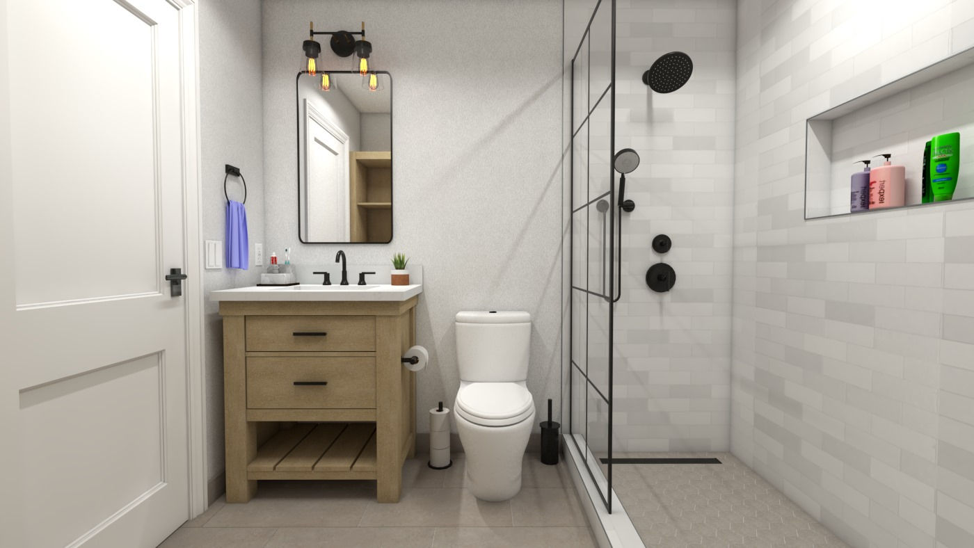 The ADU also includes a 152 sq. ft. bedroom and a beautifully appointed bathroom, complete with tiled flooring, a spacious walk-in shower, and a luxurious horizontal shampoo niche. This backyard ADU not only enhances the property’s value but also provides a stylish and comfortable solution for family visits.